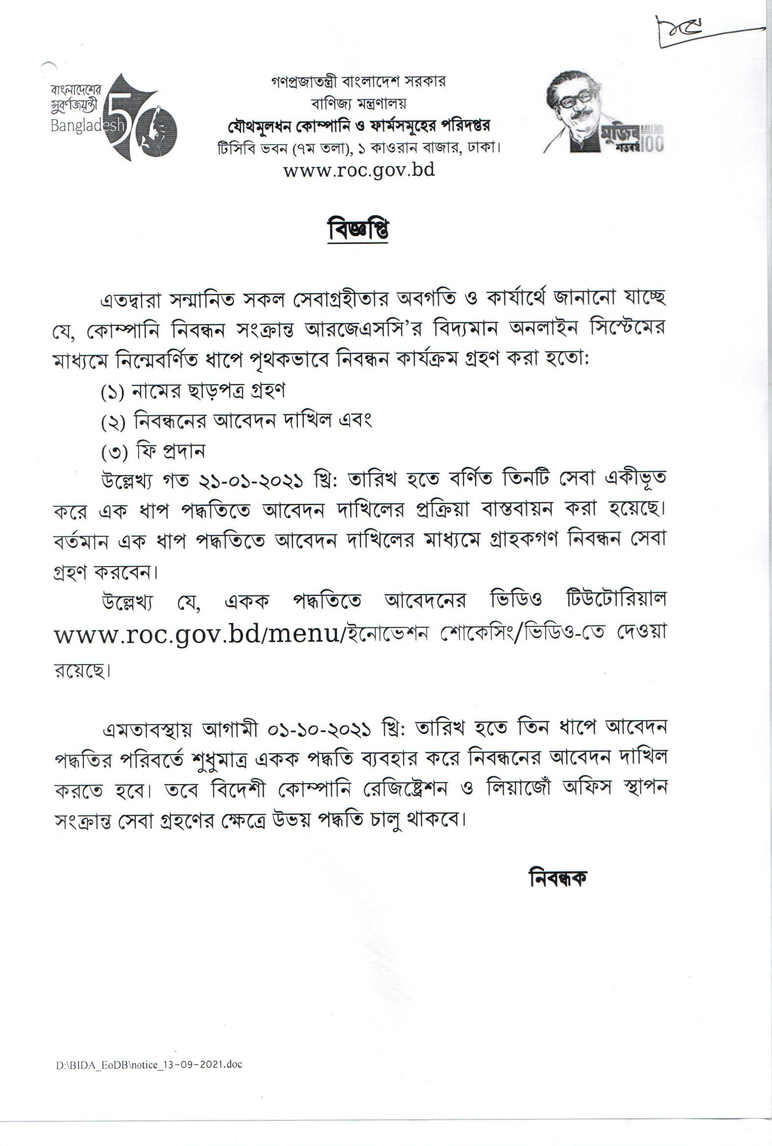 Regarding automatic preparation of Model Articles of Association and providing certified copies with electronic signature of Form 4 recorded online. |